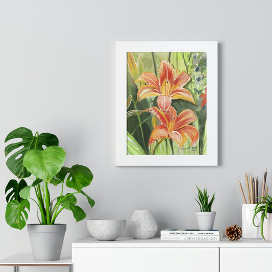 Framed Vertical Poster - Orange field of flowers